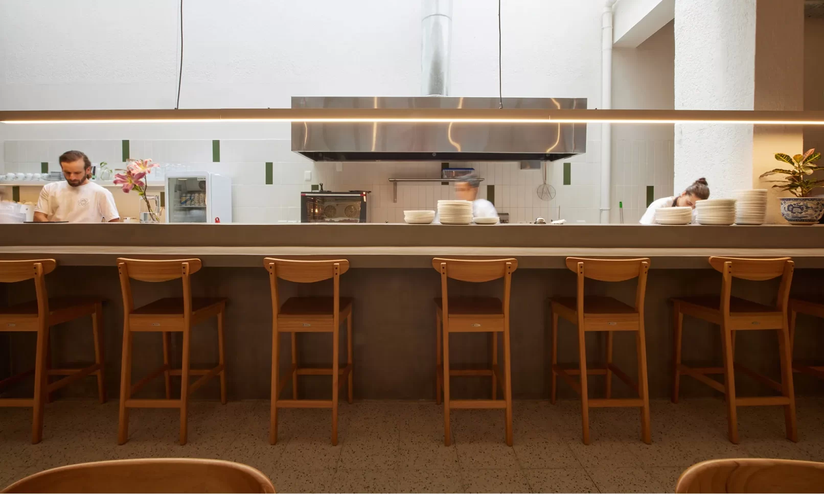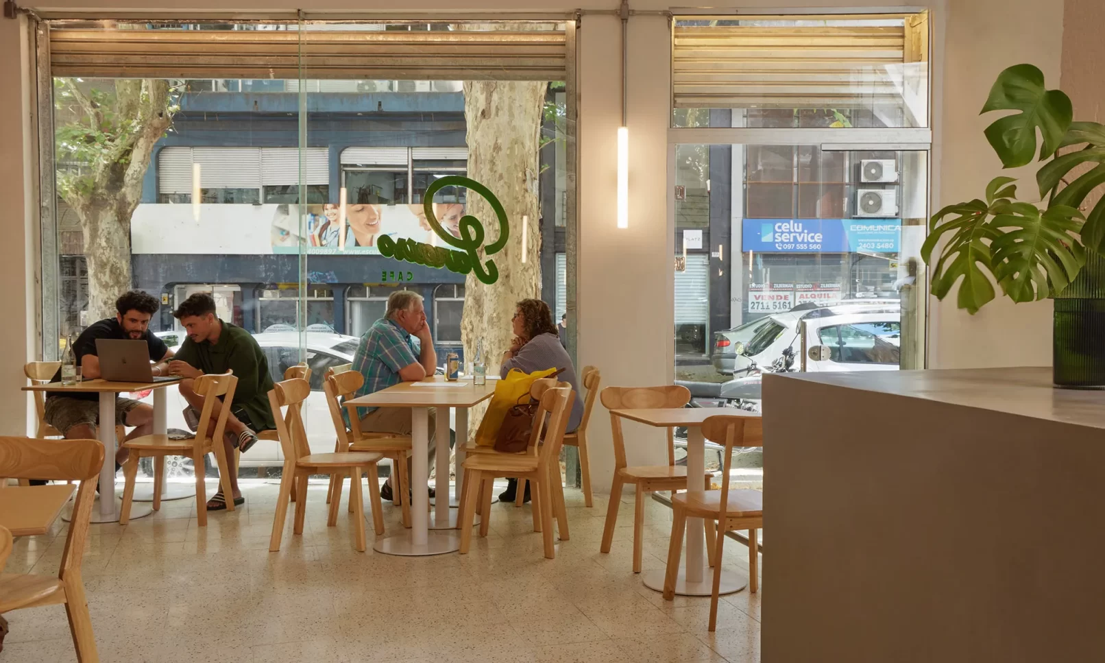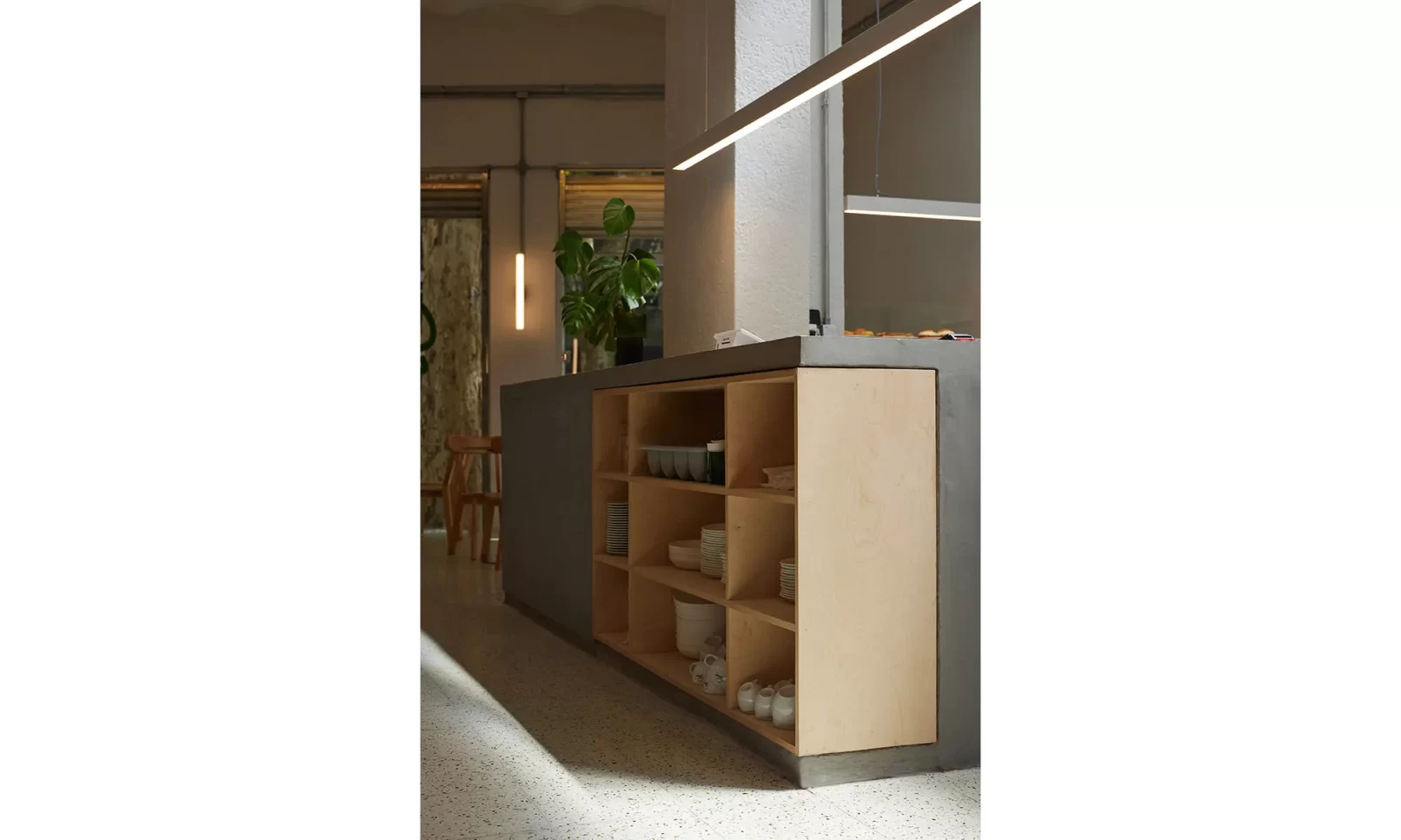 Un restaurant y cafetería de especialidad ubicado sobre la calle Constituyente, en Montevideo, Uruguay. En una construcción existente de mediados de siglo XX, con una fachada típicade acuerdo al barrio en que se ubica, se interviene este local que en su programa anterior era un gimnasio. A través de puntuales acciones, se busca adaptar el nuevo programa, exacerbando y jerarquizando las proporciones ya dadas por la espacialidad existente, respetando así su estructura. Se proyecta una barra lineal de hormigón de 12 metros de largo, que acompañada por una luminaria en todo su recorrido,oficia de límite entre la cocina y el salón, reforzando la profundidad del local. En frente se diseña un banco del mismo largo, que potencia aún más esa direccionalidad, y define el sector de mesas y sillas del salón.Por otro lado, se descarna la pared principal de piedra y ladrillo, dejando en evidencia la antigüedad de la construcción, buscando destacarla con unas luminarias a lo largo de todo el recorrido. En el remate del local, un volumen de hierro y vidrio se enciende, la pastelería, donde nuevamente la zona de producción se exhibe y pasa a ser parte de la experienciadel lugar.