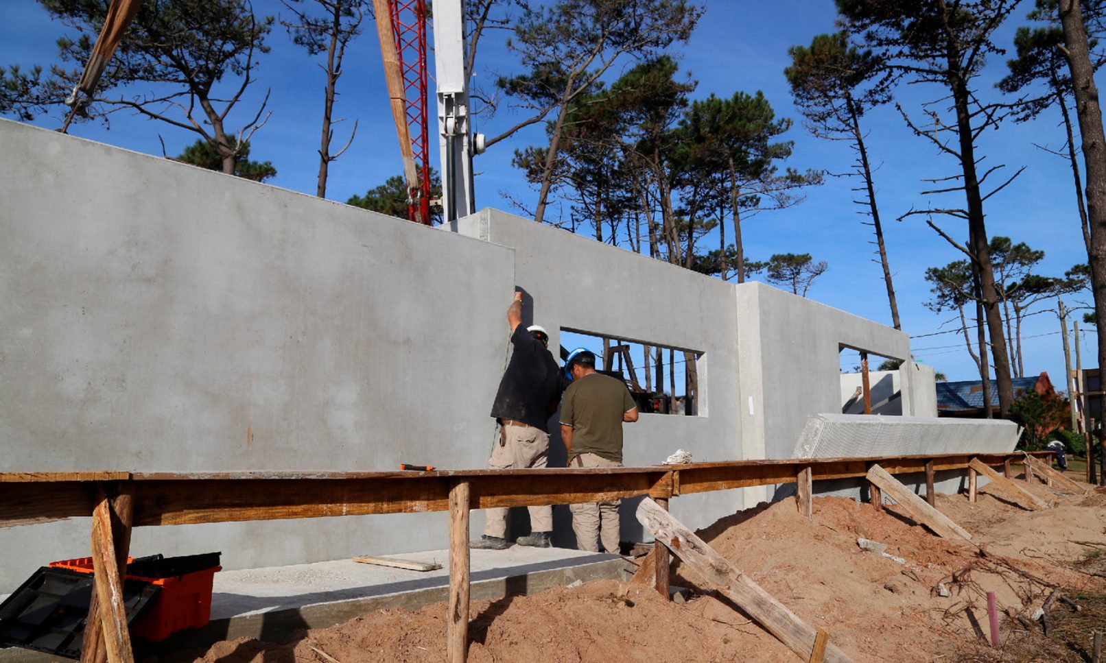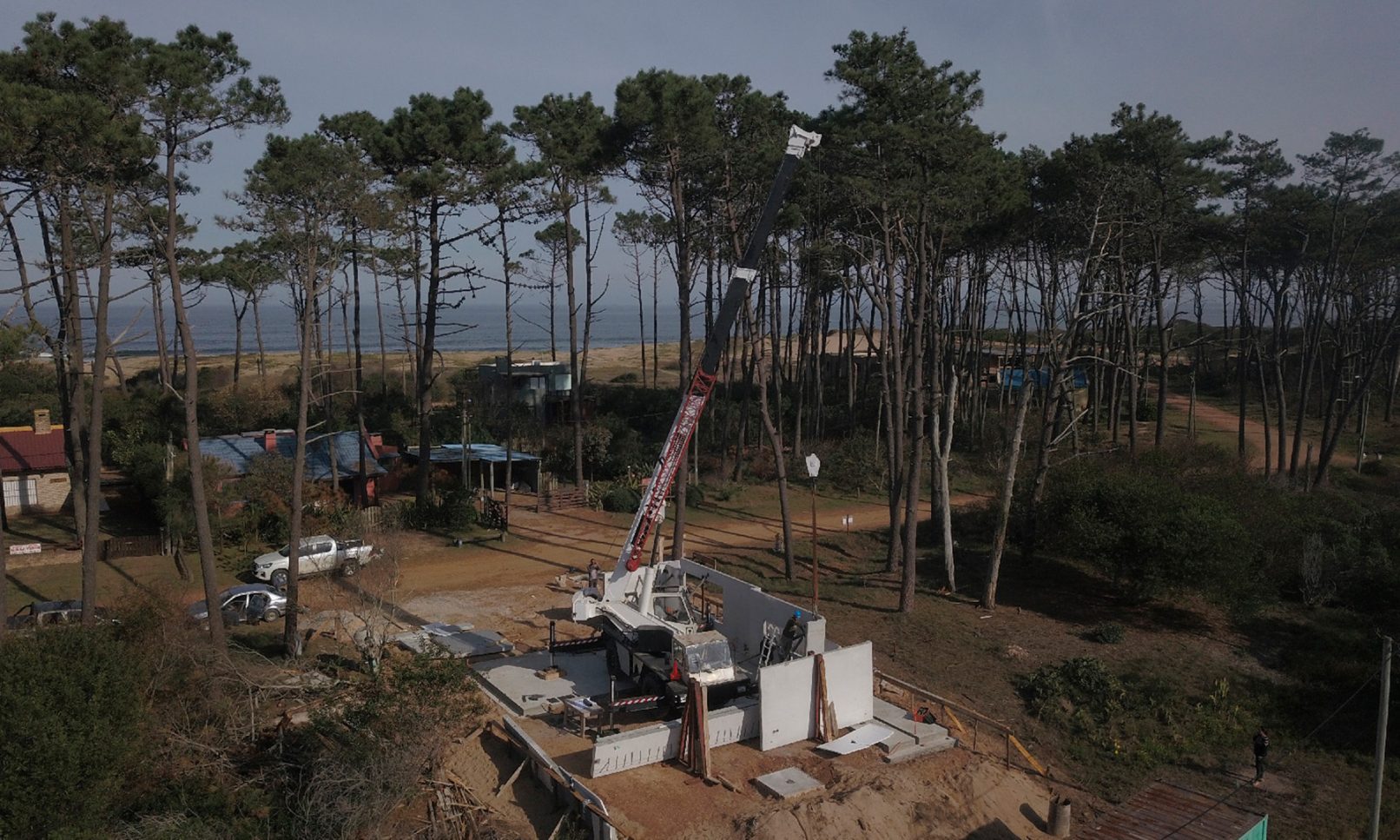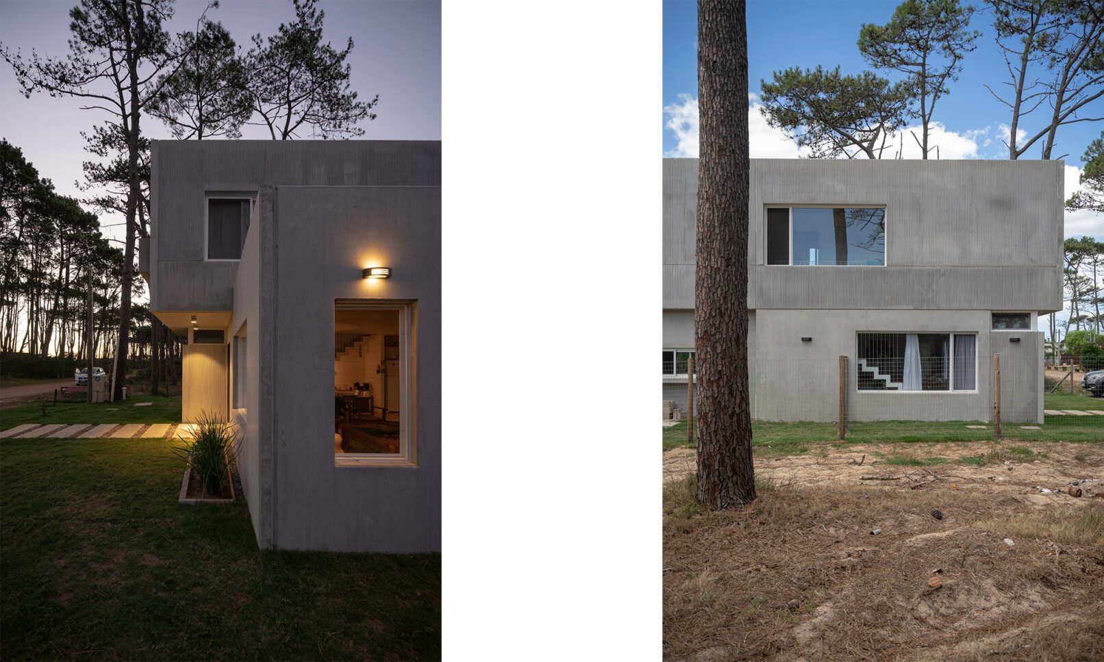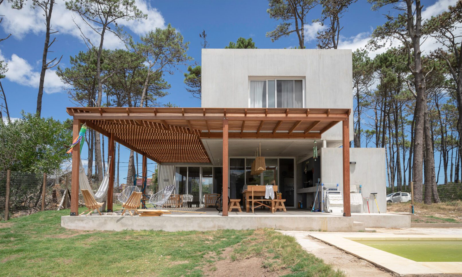 Casa Ocean se implanta en un terreno de suave pendiente, próximo a la costa del balneario. Se proyecta en dos niveles, en los que la planta baja, de carácter público, se cierra al acceso en forma de L para abrirse hacia el norte en busca de las vistas de la costa. La planta alta es un volumen rectangular simple que, apoyado sobre la L de planta baja y en sentido norte-sur, permite generar dos grandes espacios exteriores techados, uno para el acceso y otro para el parrillero. La utilización del sistema constructivo cross wall permitió potenciar este juego volumétrico a través de la utilización de distintas texturas.