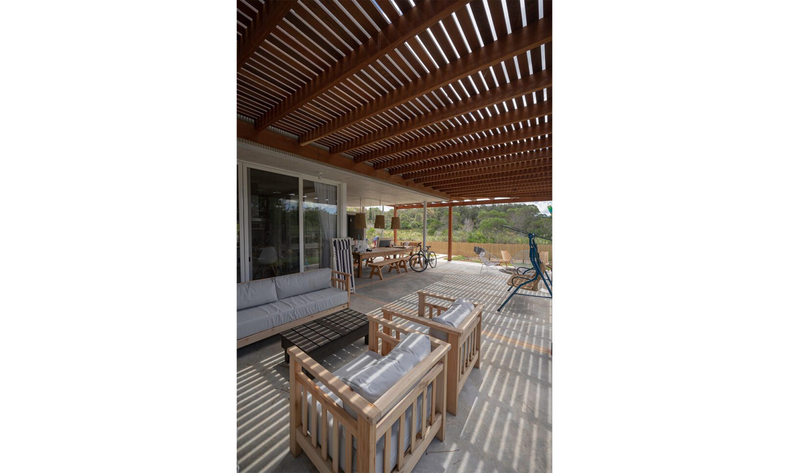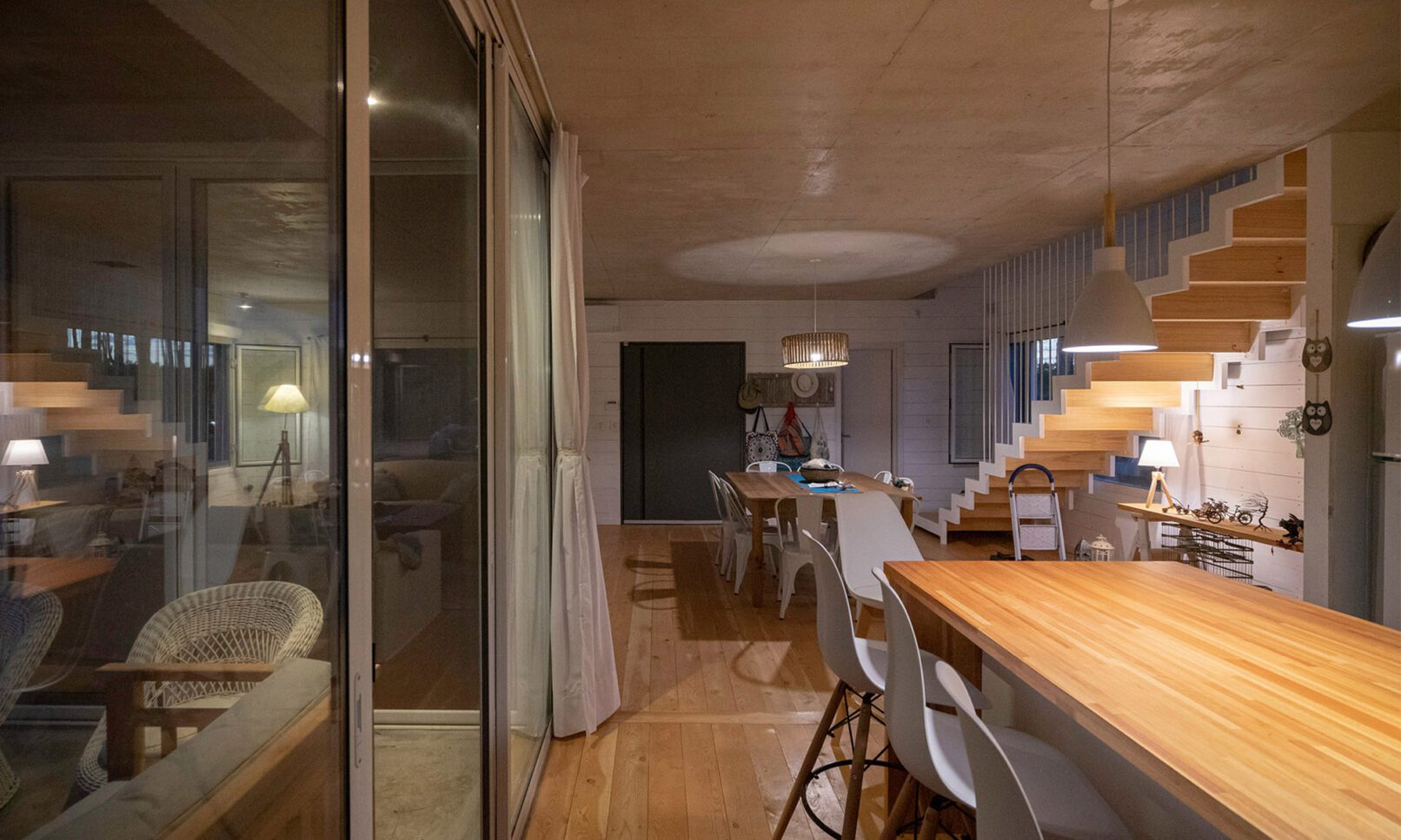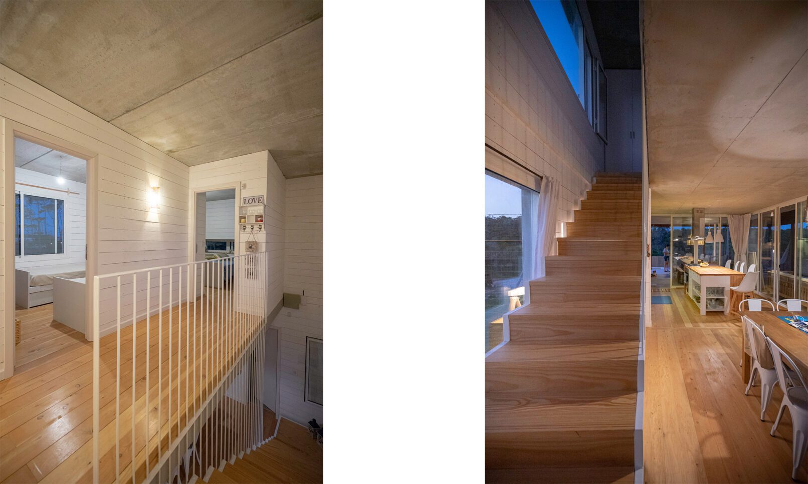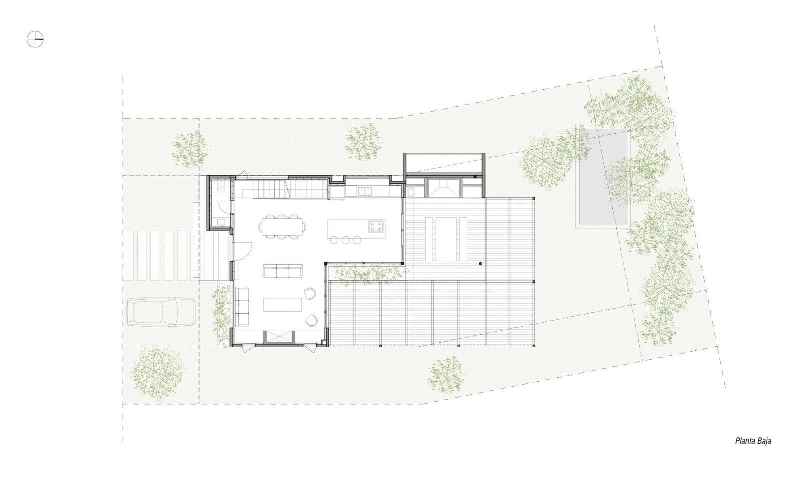 Casa Ocean se implanta en un terreno de suave pendiente, próximo a la costa del balneario. Se proyecta en dos niveles, en los que la planta baja, de carácter público, se cierra al acceso en forma de L para abrirse hacia el norte en busca de las vistas de la costa. La planta alta es un volumen rectangular simple que, apoyado sobre la L de planta baja y en sentido norte-sur, permite generar dos grandes espacios exteriores techados, uno para el acceso y otro para el parrillero. La utilización del sistema constructivo cross wall permitió potenciar este juego volumétrico a través de la utilización de distintas texturas.