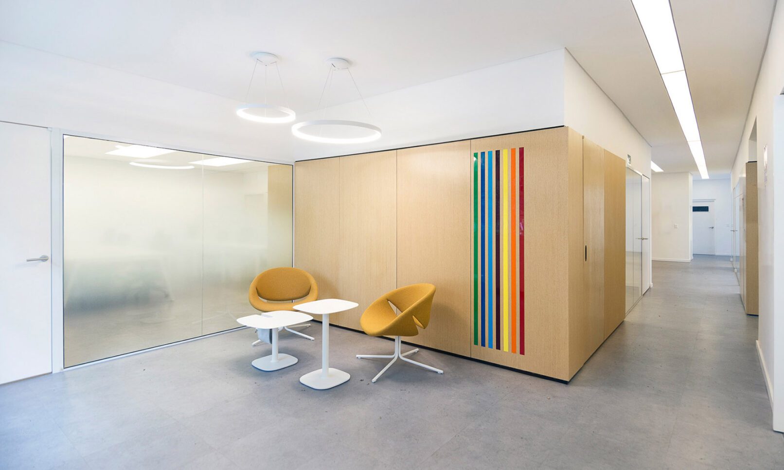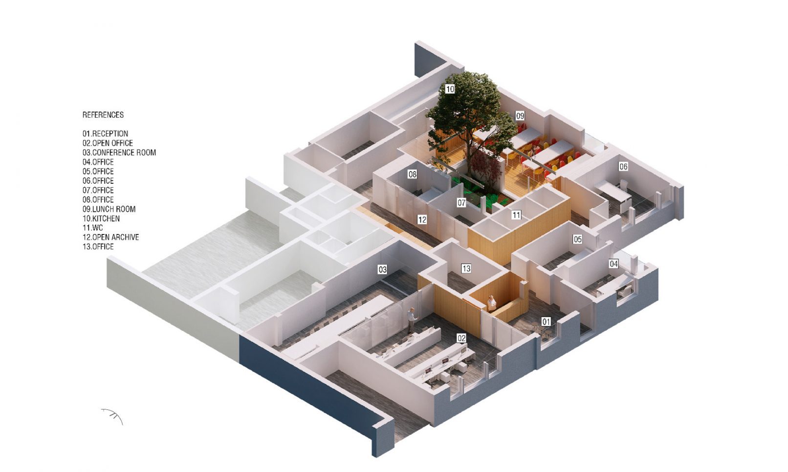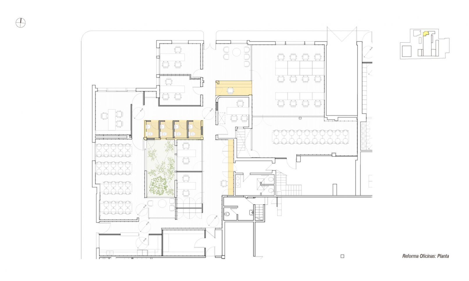 Se interviene en una antigua planta industrial de producción de pigmentos que estaba cerrada hace más de dos años. Se reformaron 330 m2 de oficinas, se proyectó una plaza de estacionamientos, varios espacios verdes de esparcimiento, se hizo un proyecto de 150 m2 para el sector de laboratorio, se reformaron los servicios (vestuarios, cocina, baños y comedor) de acuerdo a la normativa municipal vigente, y se hizo un mantenimiento a todo el sector de la planta de producción y depósitos, ya que contaba con varias patologías por falta de mantenimiento y estar en desuso.