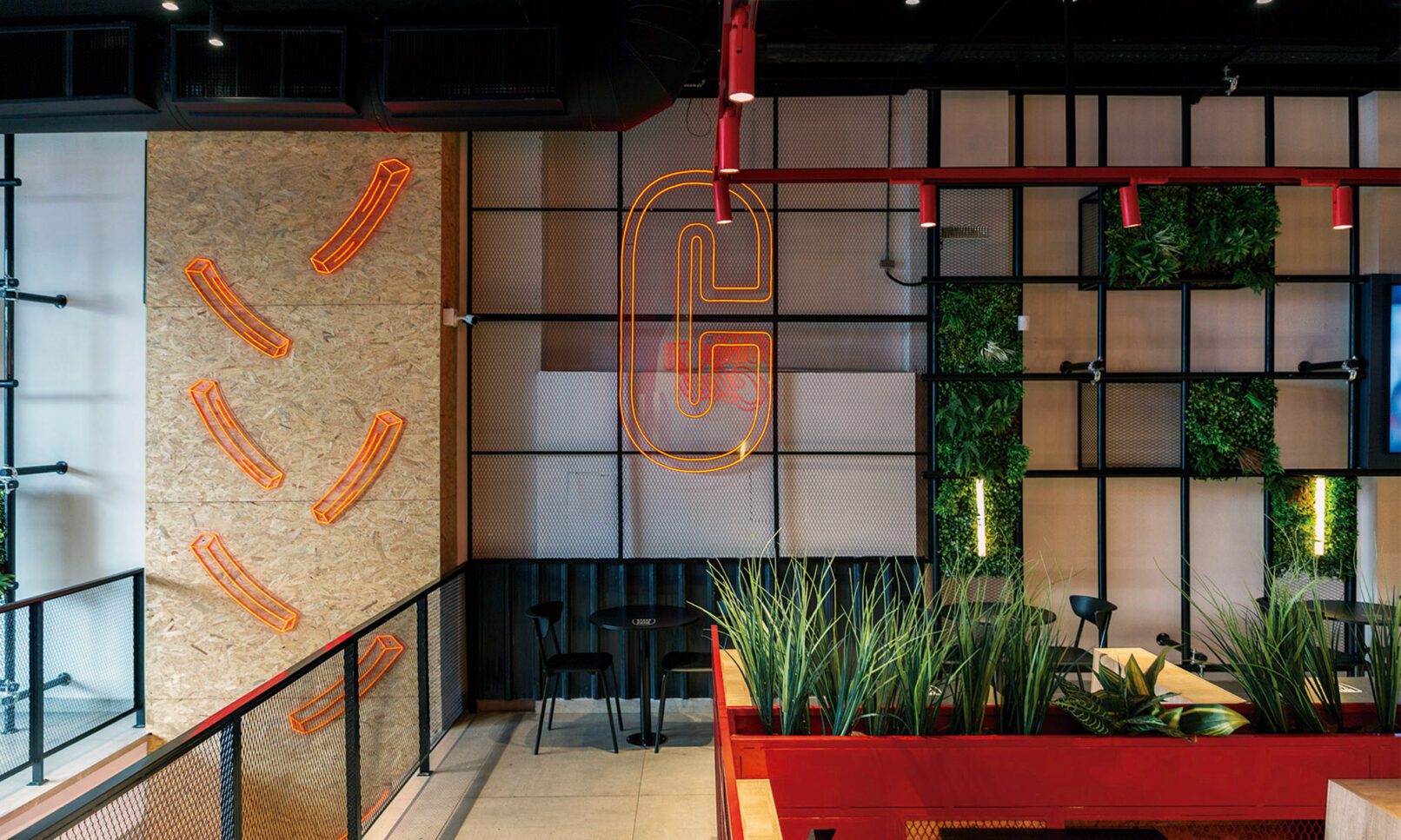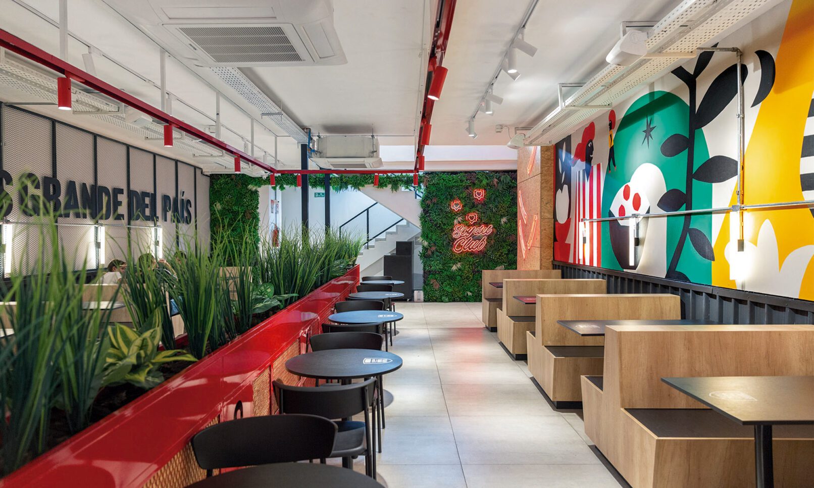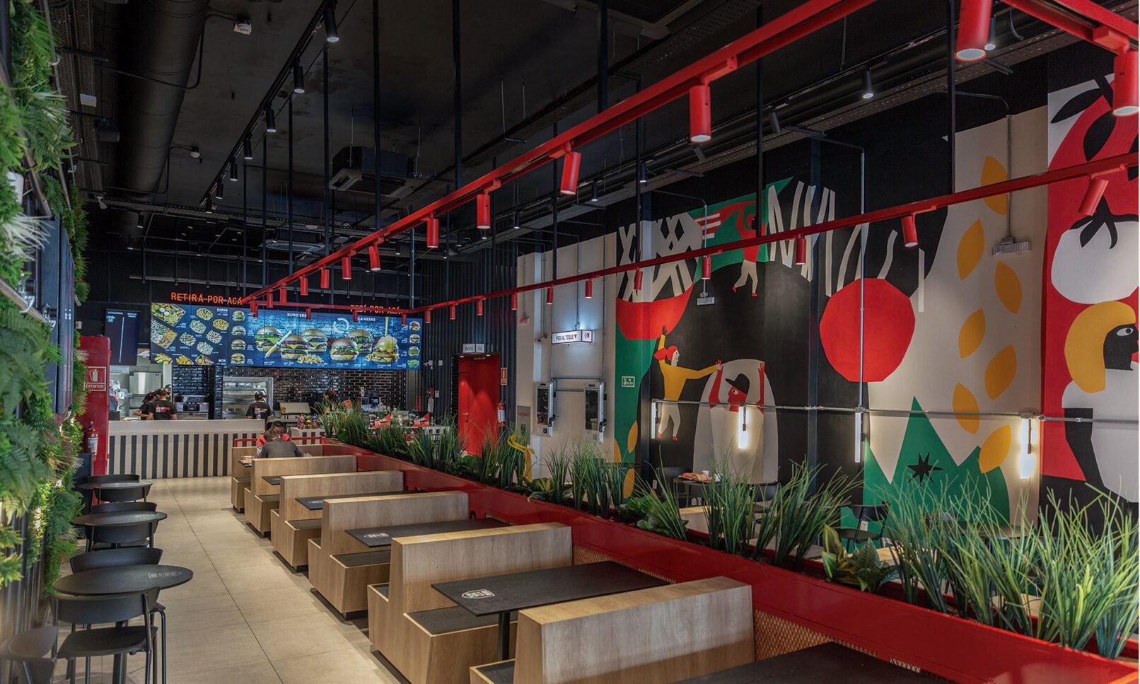 Este local es el primer local de fast food de una conocida empresa del rubro gastronómico. El desafío consistió en primer lugar, lograr una imagen de marca que defina una identidad, y por otro lado una imagen adecuada y potente que pudiera repetirse para poder generar una franquicia a nivel nacional.