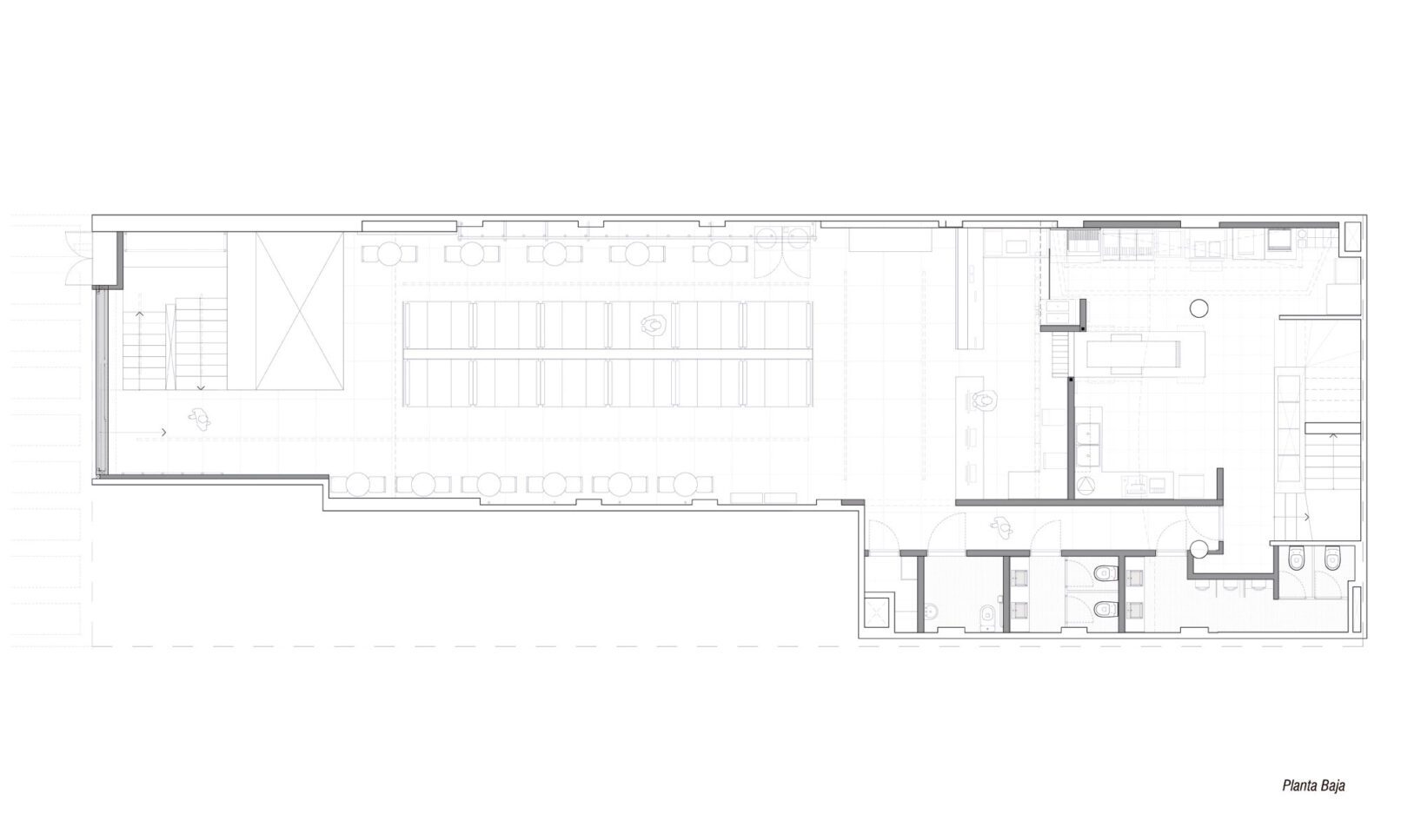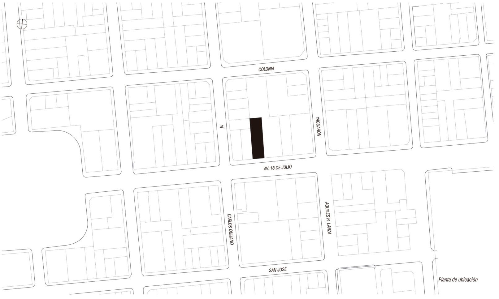 El local se ubica en la planta baja y subsuelo de un edificio de valor patrimonial en 18 de julio, por lo que su fachada deberá conservar sus preexistencias y a términos comerciales con una buena visibilidad en referencia a su entorno. Al interior, con una planta de proporciones alargadas, resuelve todos los requerimientos para su funcionamiento y propone una imagen contundente en toda su envolvente.