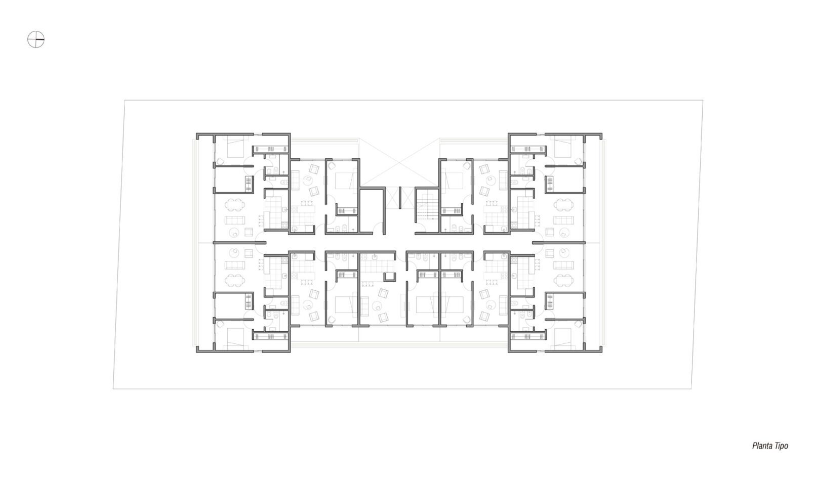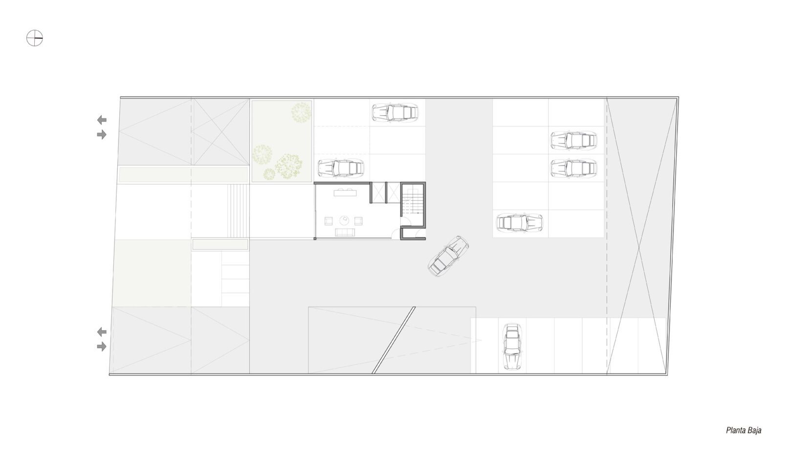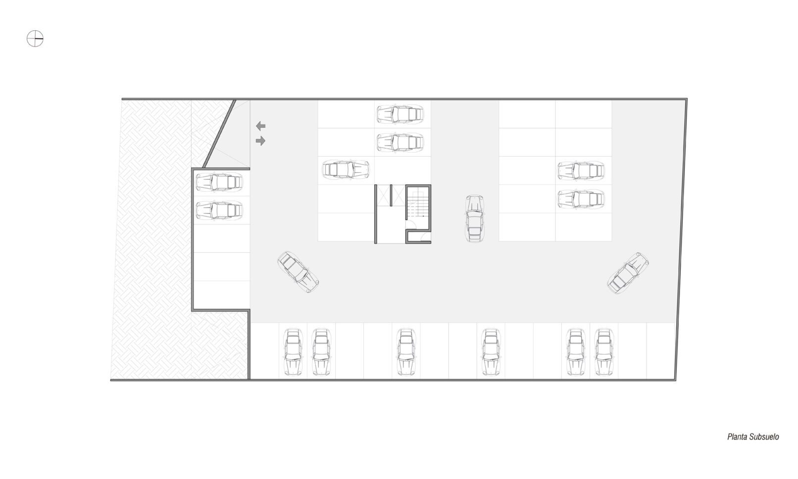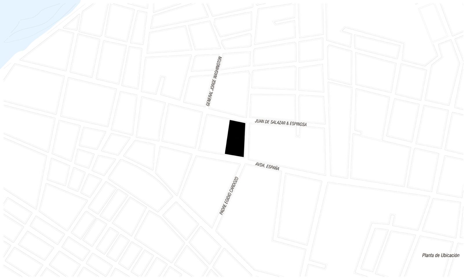 El edificio ubicado en Avda. España cuenta con los primeros niveles de estacionamiento, y los niveles superiores de vivienda. El volumen inferior maximiza la utilización del predio a baja altura para generar 140 plazas de estacionamiento para automóviles y 28 para motos. Mientras, el bloque superior de viviendas aloja 108 apartamentos de uno y dos dormitorios. El conjunto edilicio se corona con una azotea que alberga los amenities que incluyen dos barbacoas, una piscina con deck y una zona de lavadero interior y exterior.