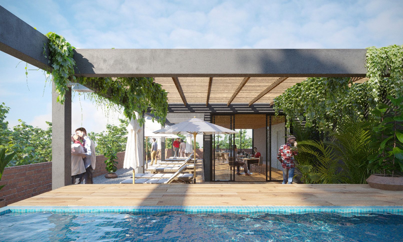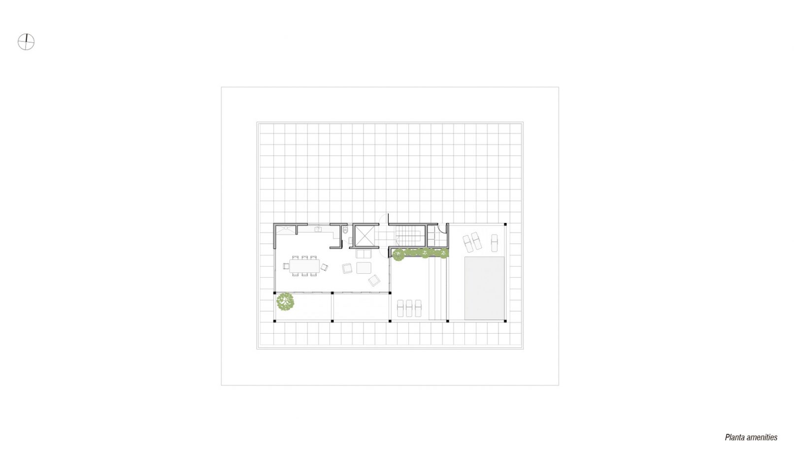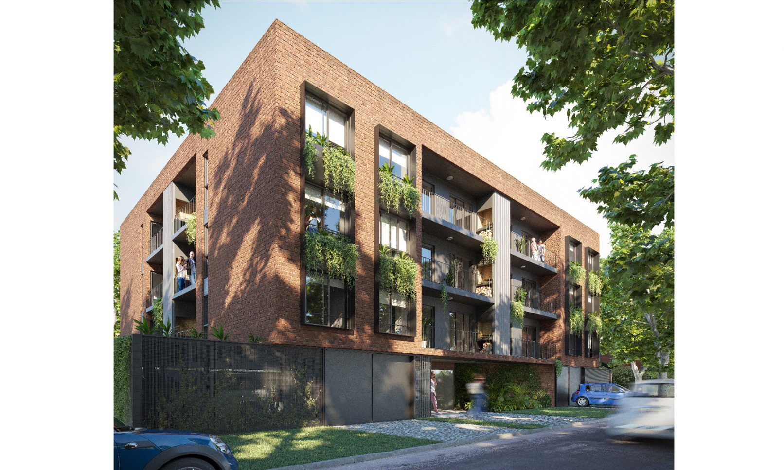 El proyecto se ubica en el municipio de Luque, Paraguay. Se ubicación estratégica garantiza una fácil conectividad con los servicios del entorno. El edificio se implanta como un volumen único de 5 niveles. La planta baja contiene los estacionamientos y el hall de acceso, lo que ocupa casi la totalidad del área del terreno y deja únicamente un retiro hacia la calle. Los siguientes tres niveles generan una volumetría exenta, lo cual permite utilizar todo el perímetro para apartamentos logrando así las condiciones de iluminación y ventilación. Al centro se propone el núcleo de circulación vertical. En la azotea se concentran los amenities, los cuales se separan de los bordes para potenciar la volumetría. La piel de ladrillo y el abundante uso de vegetación buscan referir a la cultura local.
