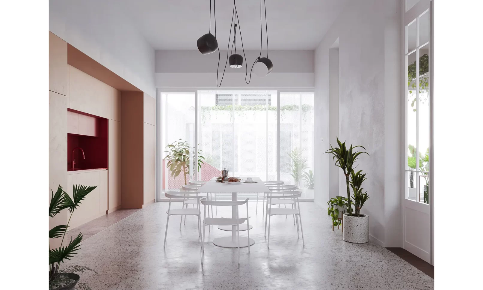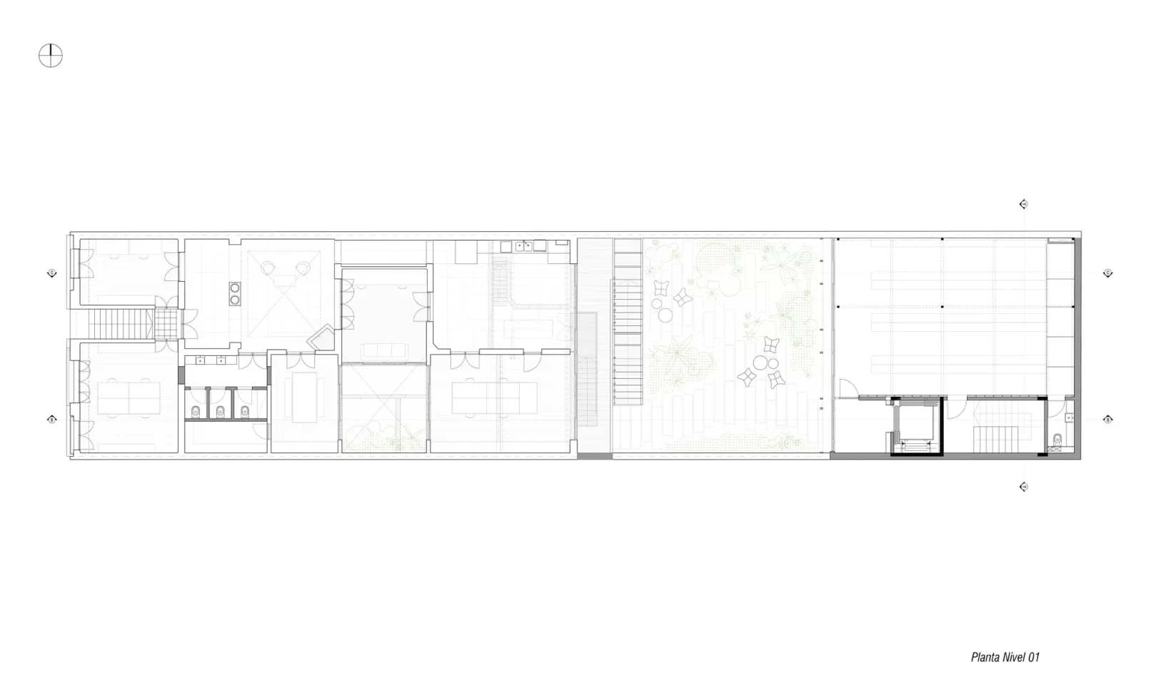 Se trata de un programa destinado a oficinas y depósito de HÓMINI, una marca dedicada al diseño y comercialización de accesorios de moda cuya impronta despojada, contemporánea y femenina definen una marcada identidad. El proyecto se implanta en un padrón que contiene una antigua casa con un alto interés patrimonial, con dos niveles al frente y un gran terreno libre hacia el centro de manzana. El edificio plantea apropiarse de la vivienda existente a través de intervenciones muy respetuosas que no solo preservan la esencia arquitectónica del inmueble, sino que la potencia, valorizando tanto sus elementos formales como su especialidad.