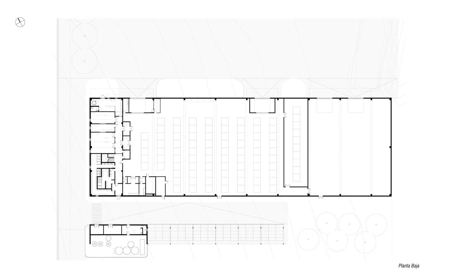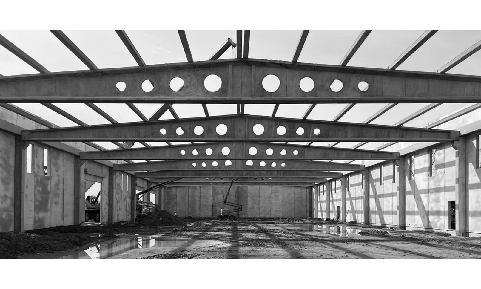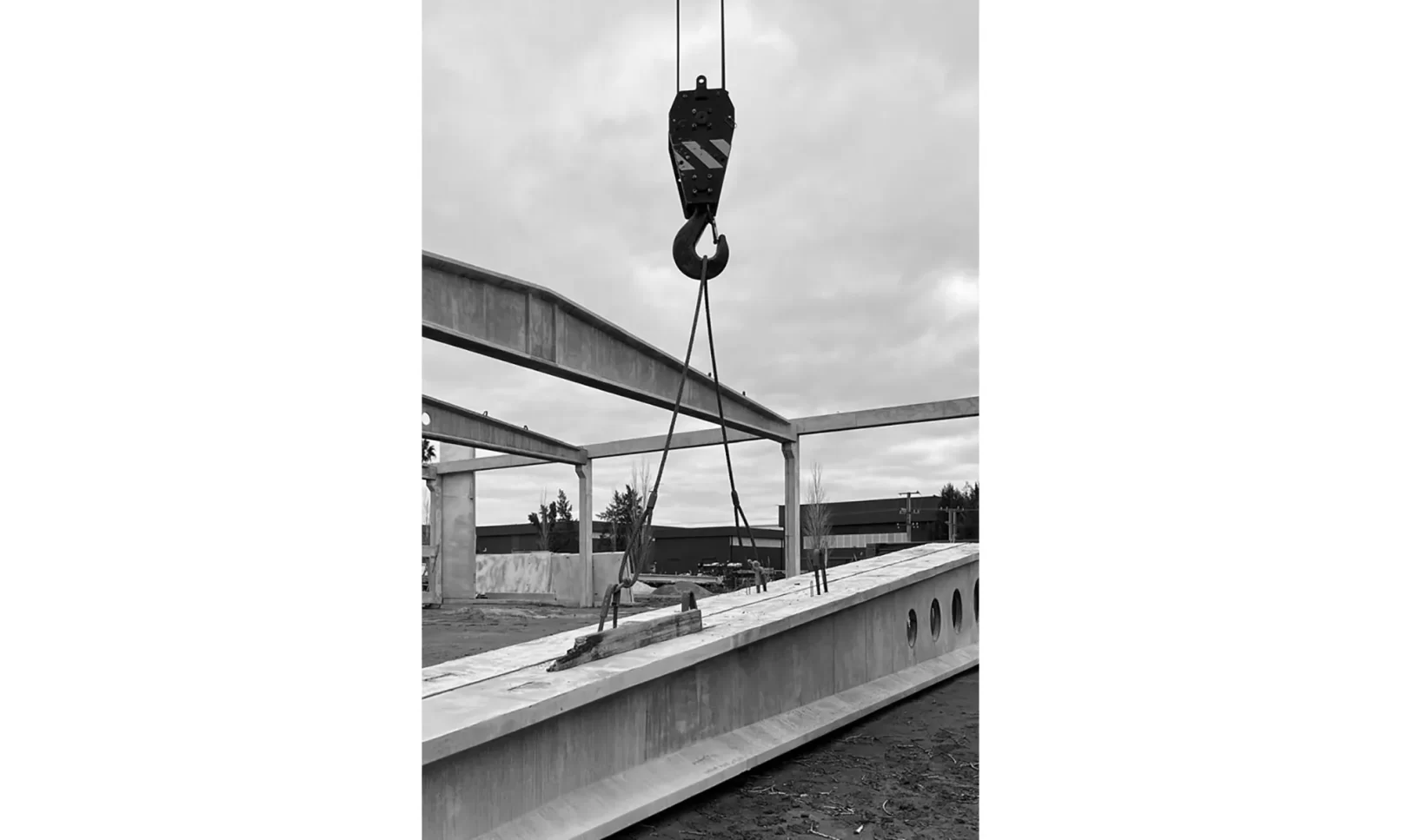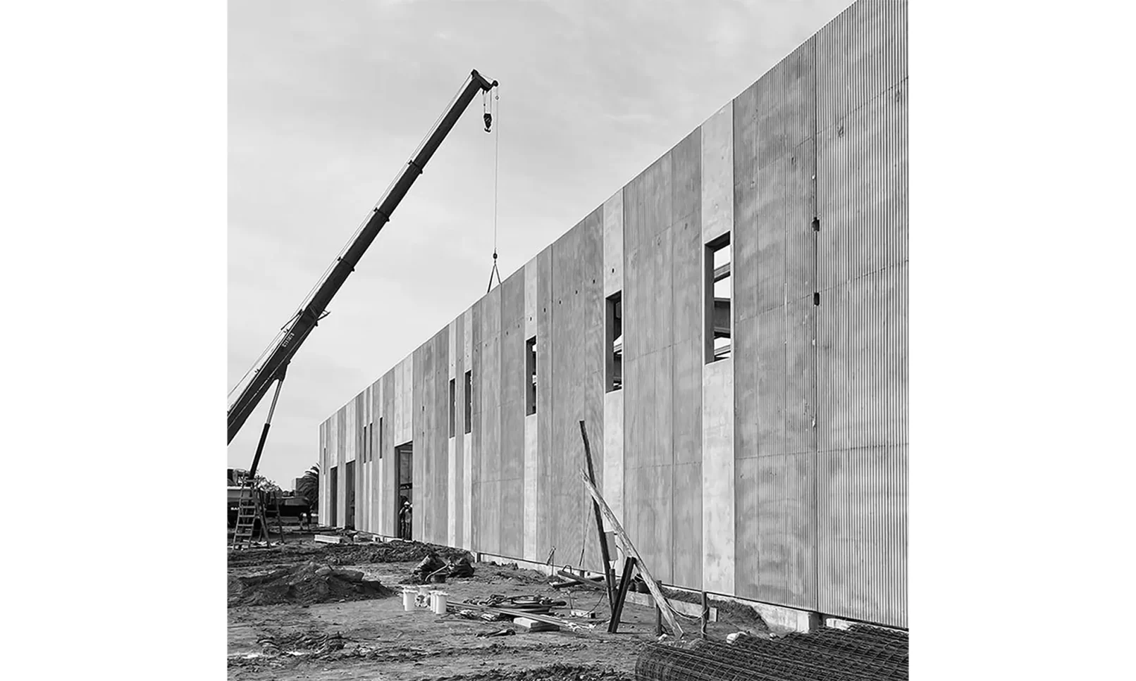 Pilares, vigas delta, vigas canal U, correas, placas lisas y texturadas, entrepiso de losa hueca y escalera son todos los componentes prefabricados que integran la propuesta. Pensar el proyecto desde el sistema constructivo prefabricado nos permitió que el diseño de la propuesta se pensara desde su materialidad, buscando así exacerbar el hormigón y potenciarlo.
