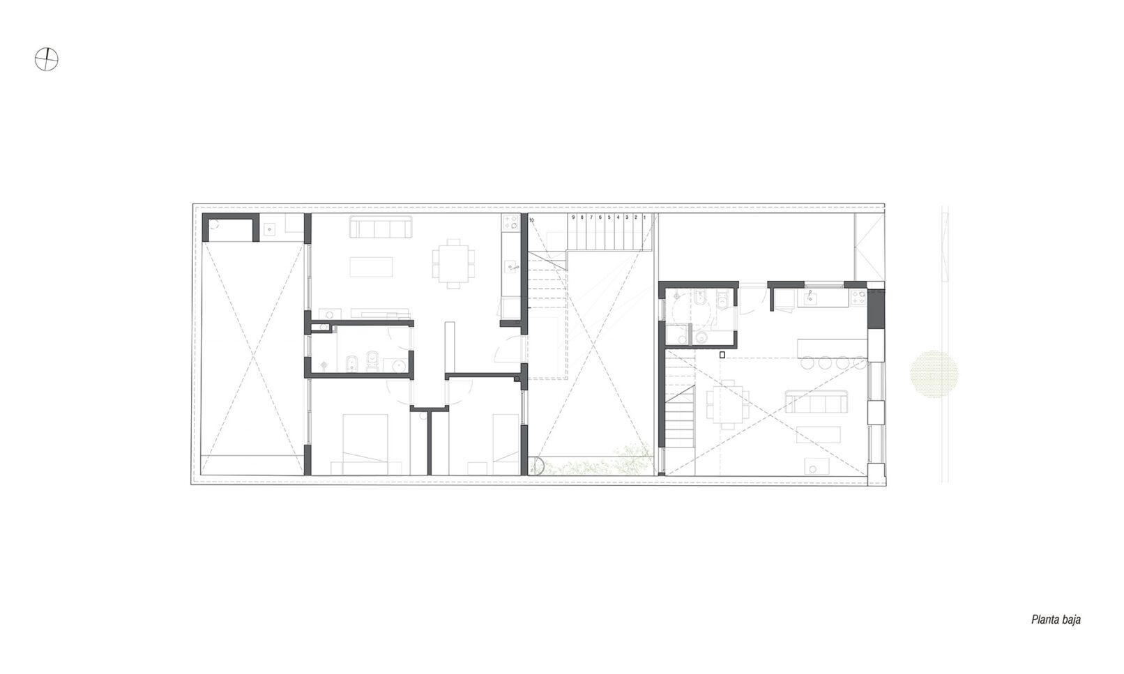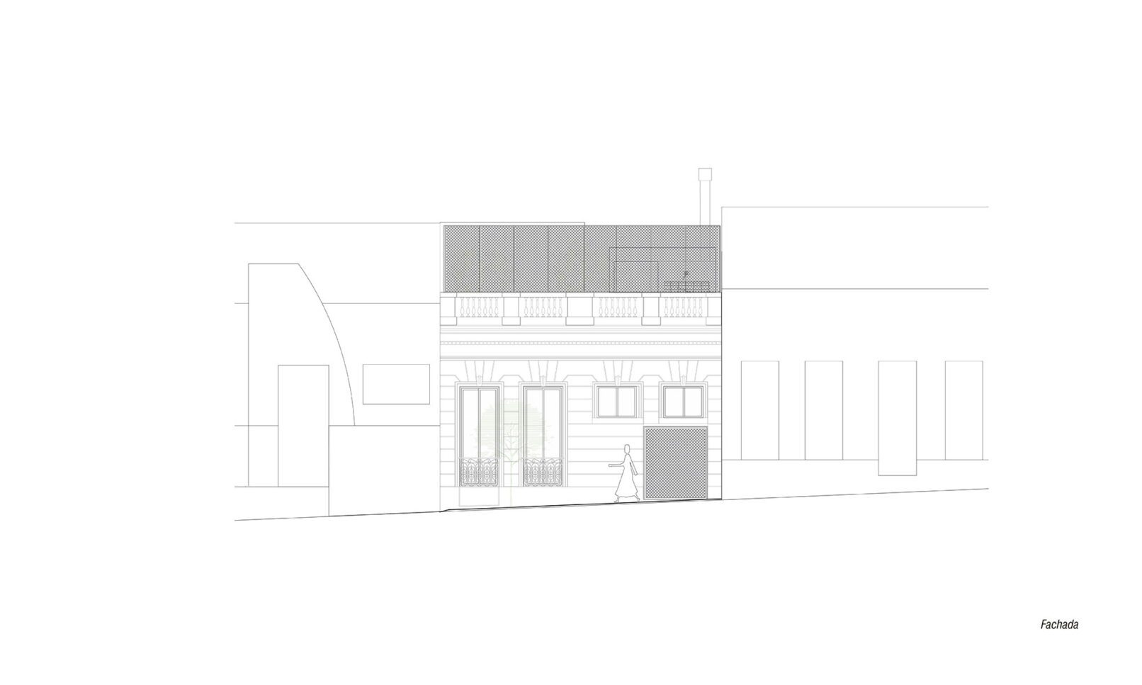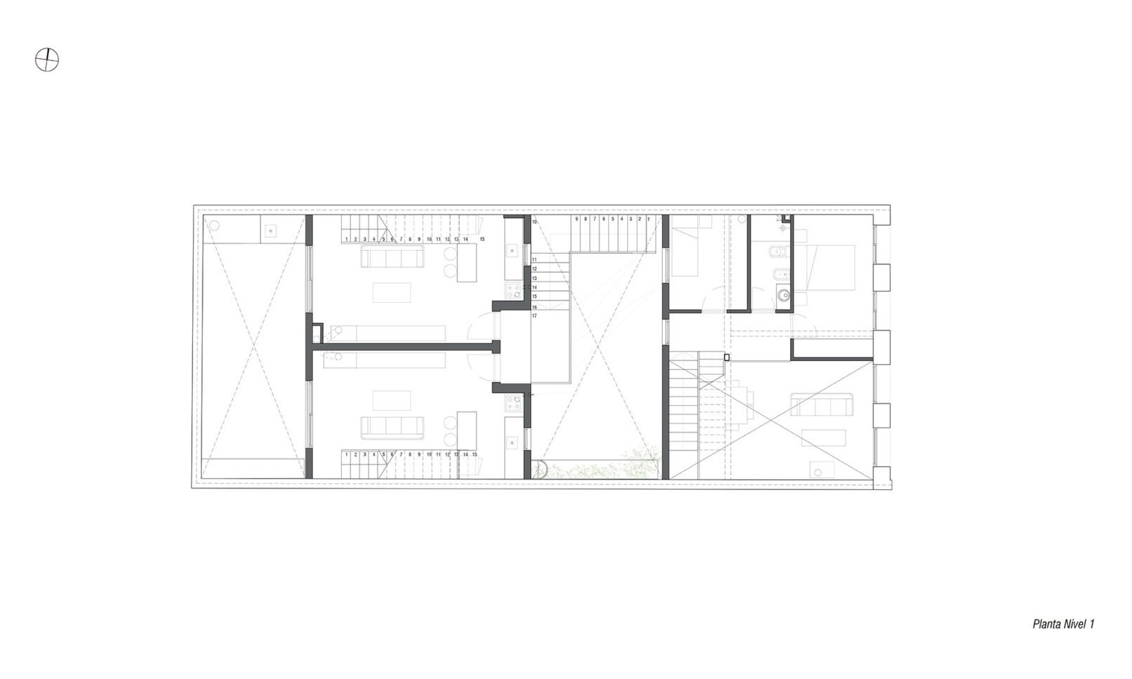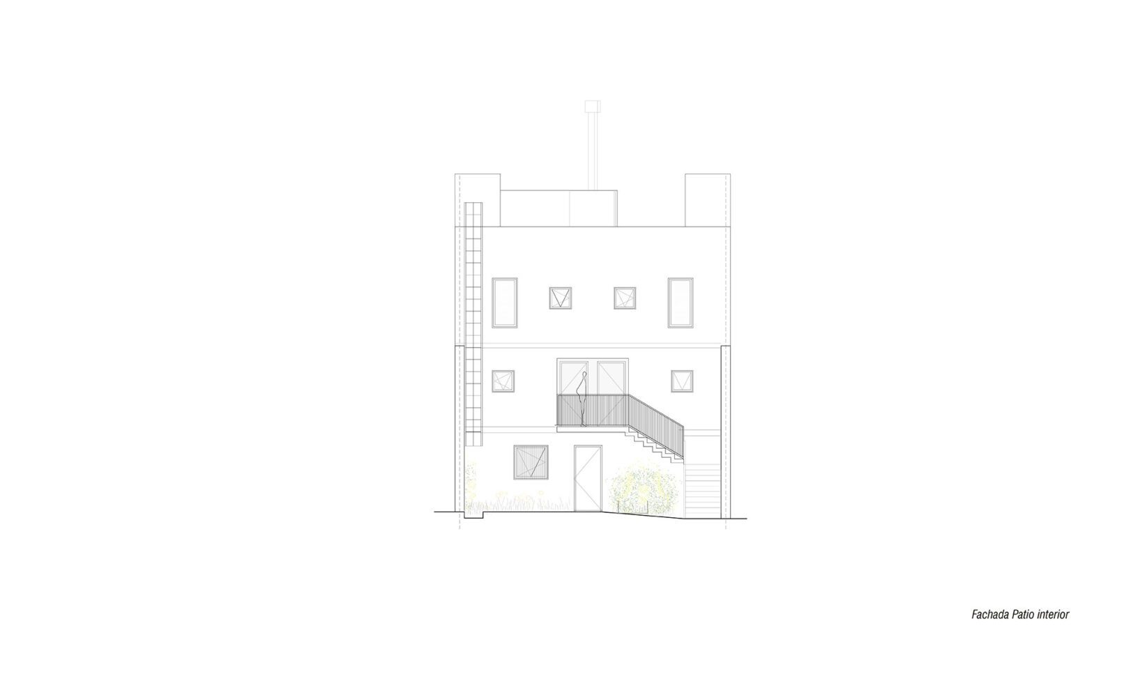 Se parte de una casa patio de principios de siglo que se encontraba en muy malas condiciones, recuperando su fachada existente buscando recuperar la fuerte identidad que la identifica en el barrio. Se propone una vivienda triplex hacia la fachada, una vivienda de dos dormitorios en planta baja hacia el fondo, y dos unidades de 1 dormitorio dúplex. La implantación responde a dos volúmenes, que se separan por un patio central que funciona como acceso hacia las unidades de atrás, e incorpora la presencia de vegetación. Todas las unidades tienen sus espacios exteriores propios de cada unidad.