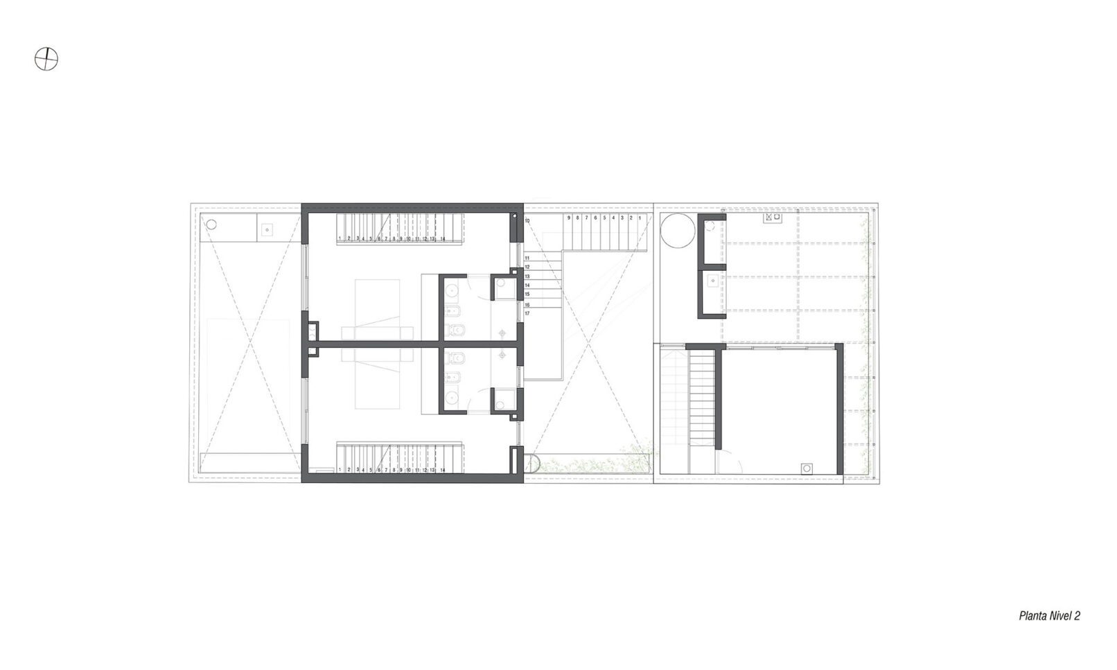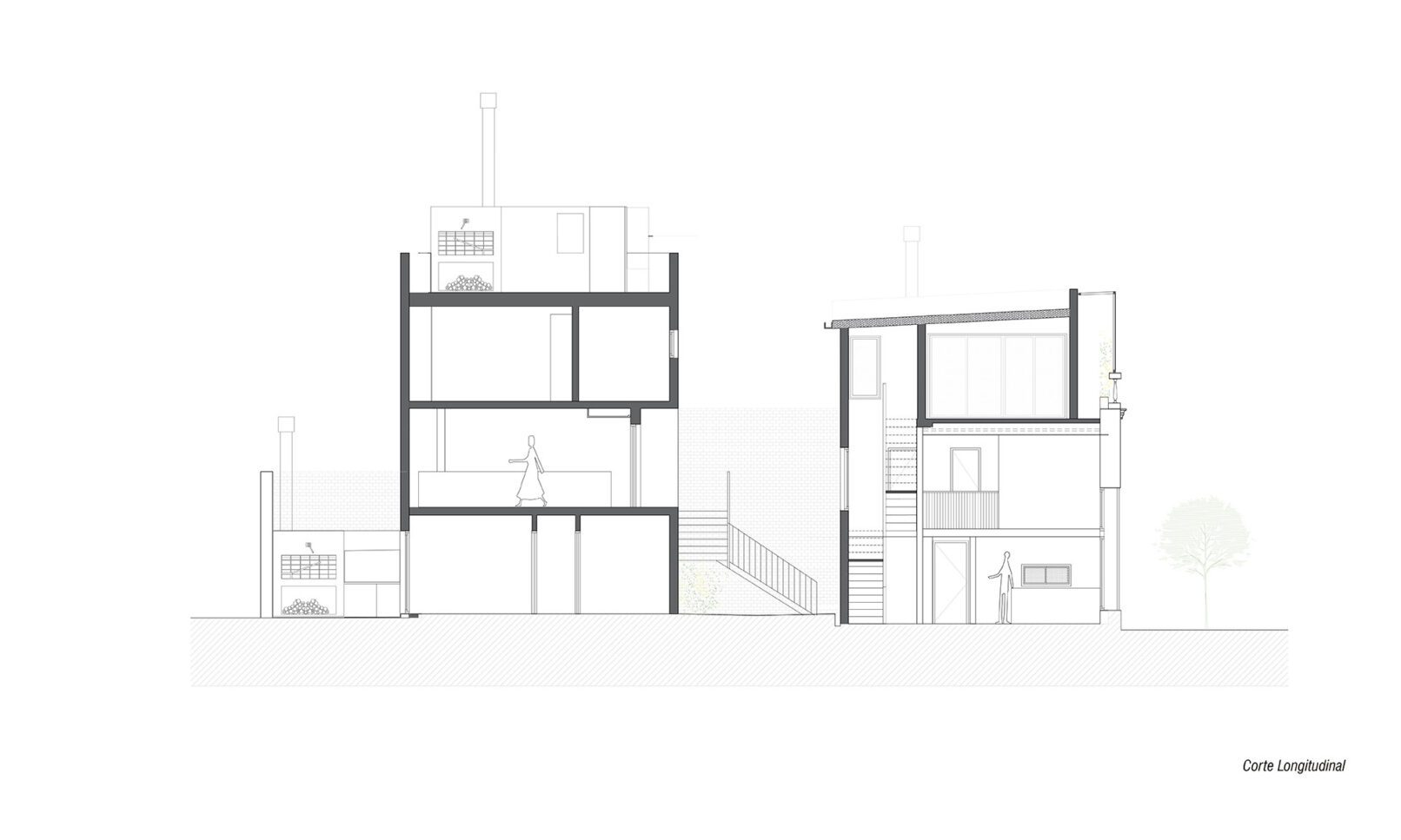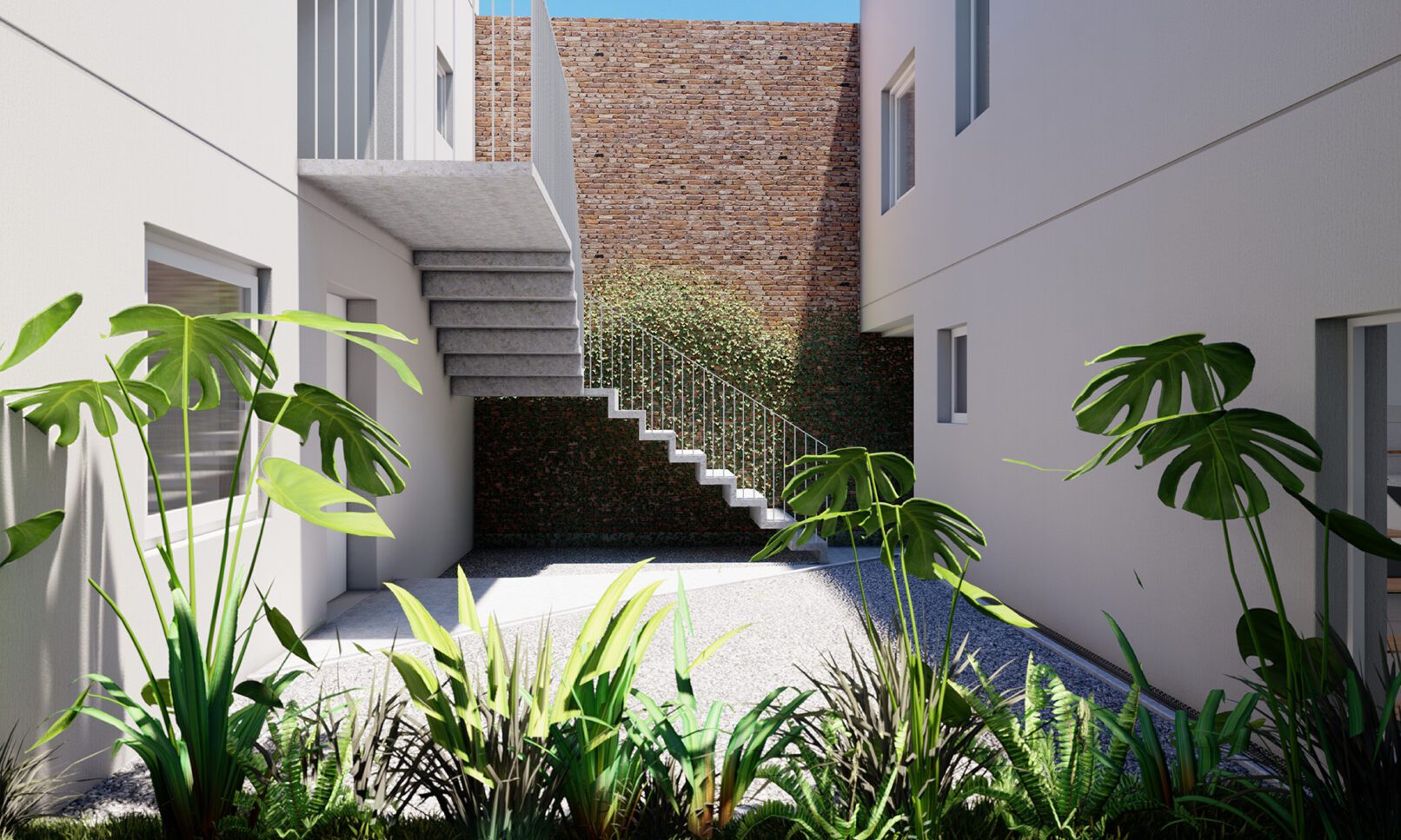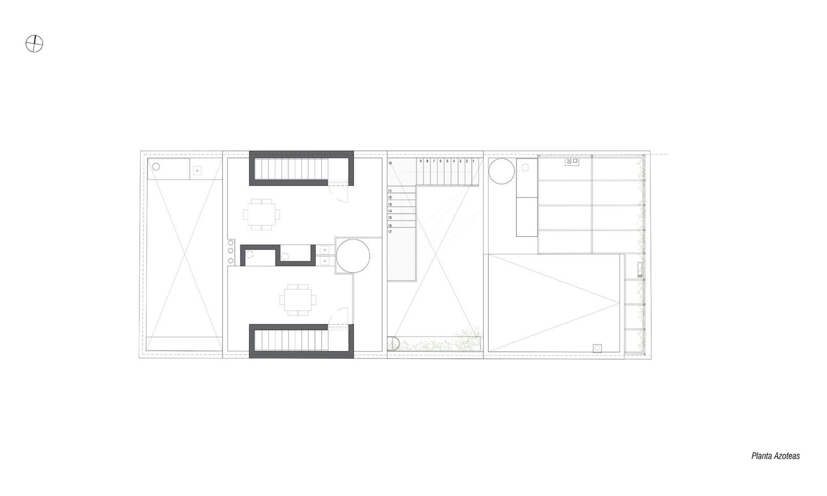 Se parte de una casa patio de principios de siglo que se encontraba en muy malas condiciones, recuperando su fachada existente buscando recuperar la fuerte identidad que la identifica en el barrio. Se propone una vivienda triplex hacia la fachada, una vivienda de dos dormitorios en planta baja hacia el fondo, y dos unidades de 1 dormitorio dúplex. La implantación responde a dos volúmenes, que se separan por un patio central que funciona como acceso hacia las unidades de atrás, e incorpora la presencia de vegetación. Todas las unidades tienen sus espacios exteriores propios de cada unidad.